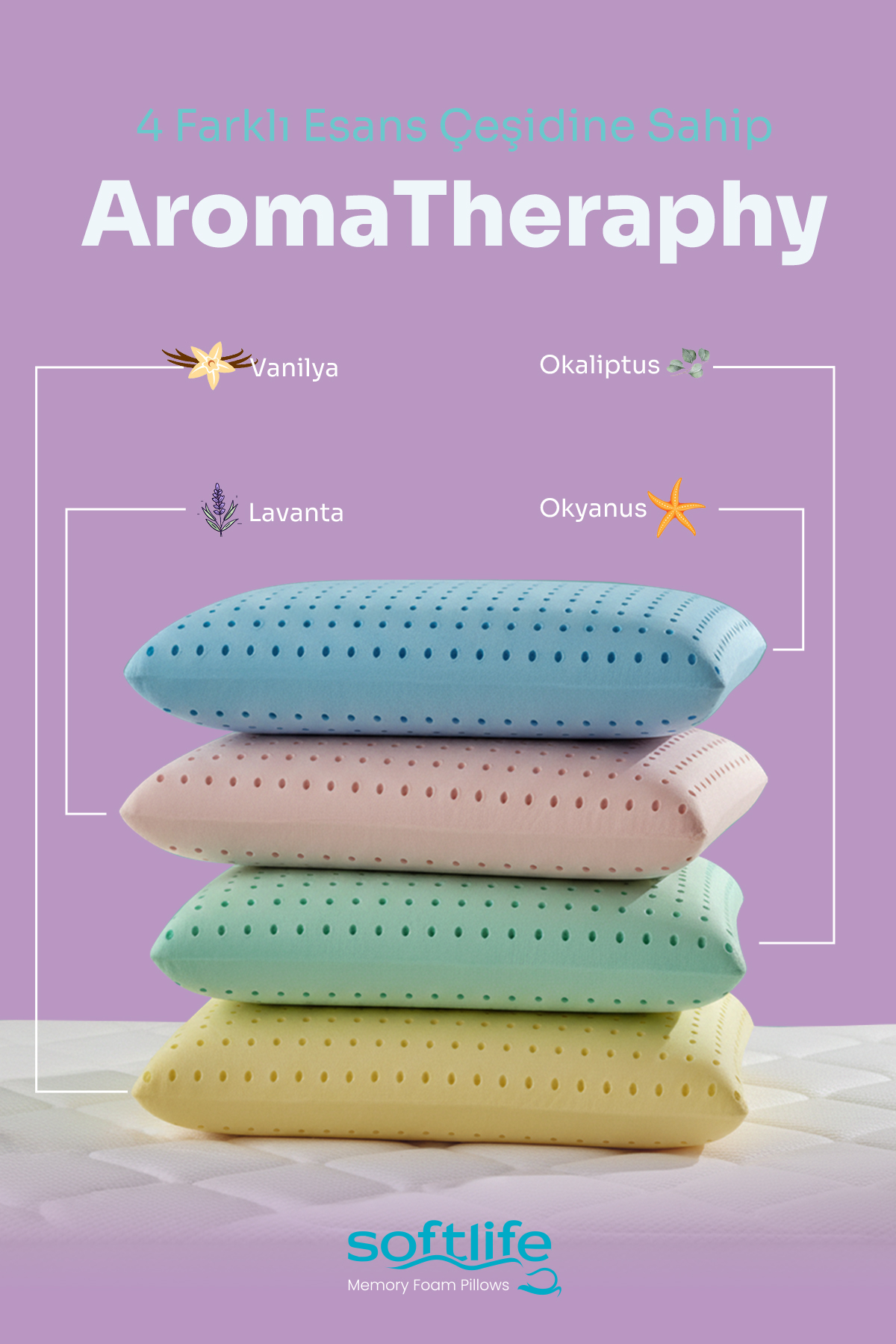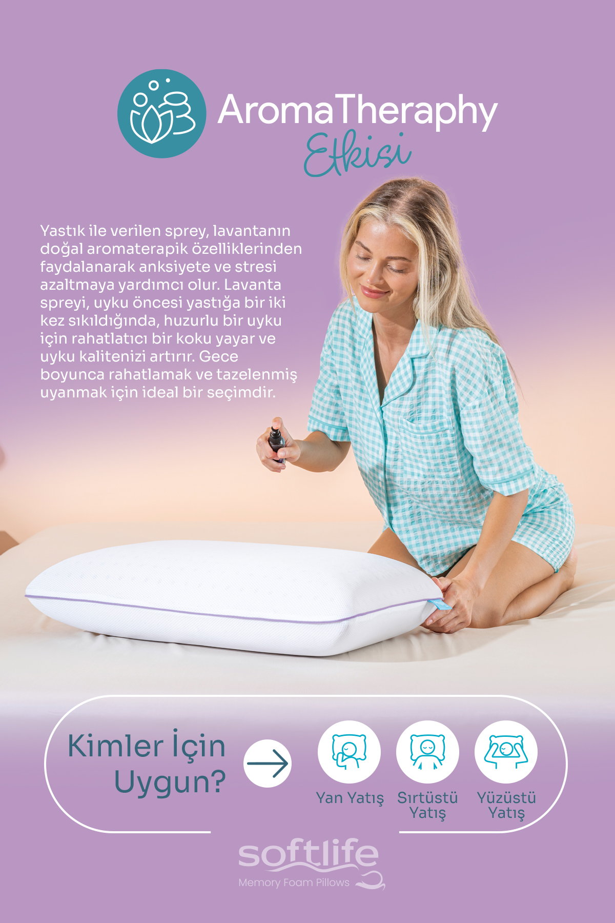 Softlife Aroma Therapy Lavanta yastık, doğanın huzur verici etkilerini yatak odanıza getiriyor. Özel hava kanalları sayesinde, mükemmel bir hava sirkülasyonu sağlayarak terlemeyi azaltırken, yastık ile birlikte verilen doğal lavanta kokusu stresi azaltır, zihni sakinleştirir ve kaygıyı hafifletir. Ayrıca, lavanta yağı anti-enflamatuar özelliklere sahiptir, bu da baş ağrıları ve sinüzit gibi rahatsızlıkları hafifletebilir.
