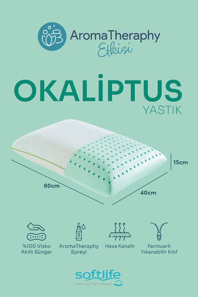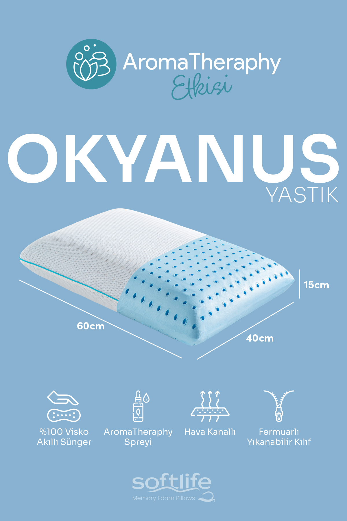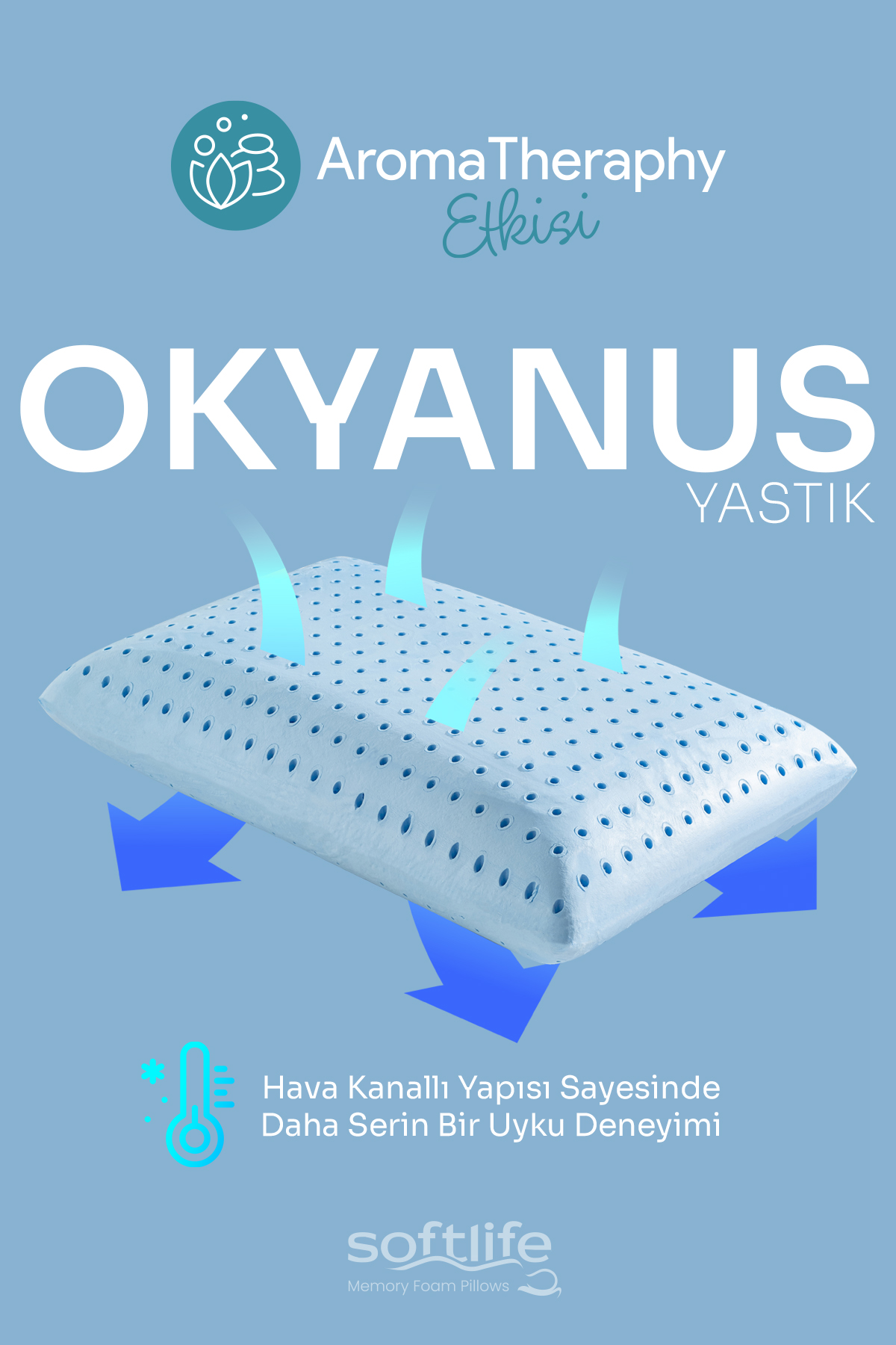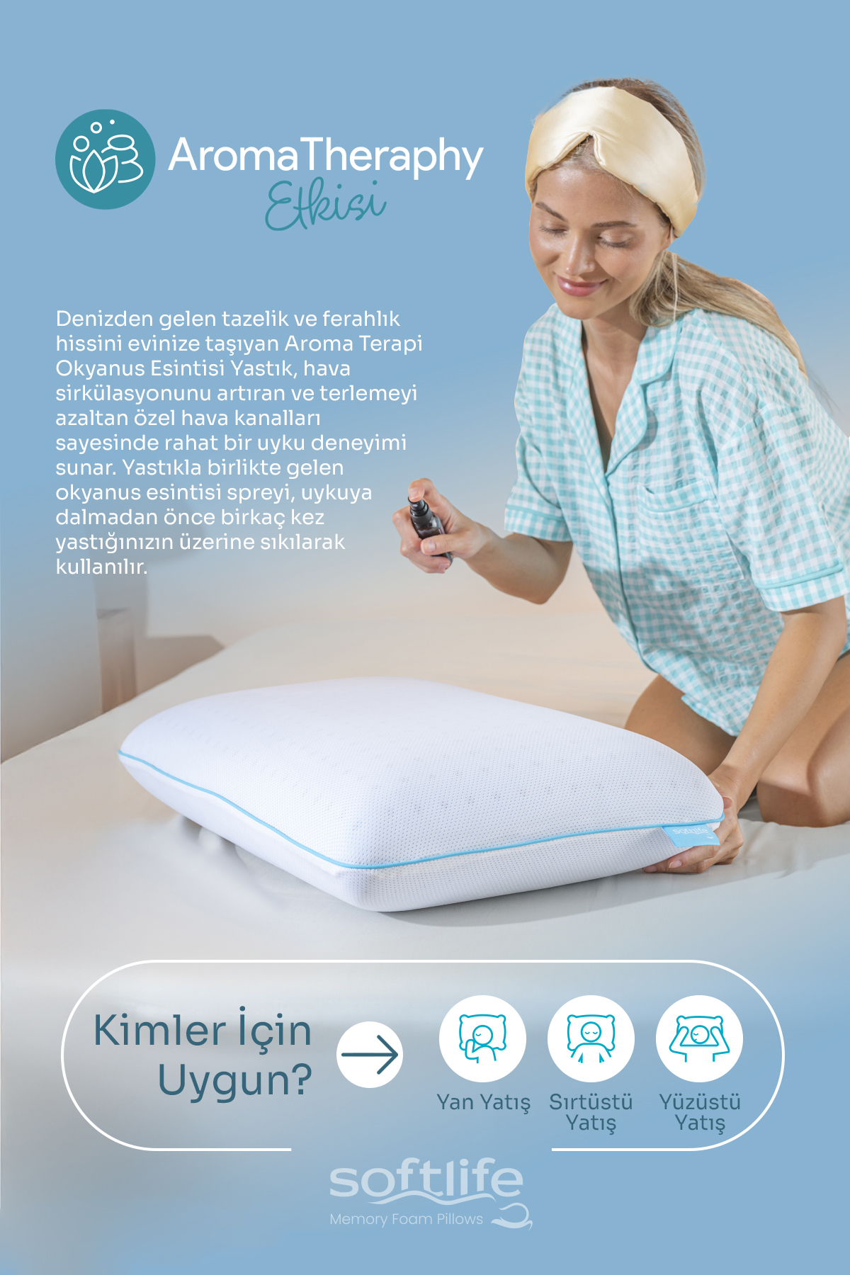 Softlife Aroma Therapy Okyanus Esintisi yastık, doğanın huzur verici etkilerini yatak odanıza getiriyor. Özel hava kanalları sayesinde, mükemmel bir hava sirkülasyonu sağlayarak terlemeyi azaltırken, yastık ile birlikte verilen okyanus esintisi kokusu, rahatlatıcı ve ferahlatıcı etkileriyle stres ve anksiyeteyi azaltır, zihinsel odaklanmayı artırır, uyku kalitesini iyileştirir ve temizlik hissi yaratır. Doğayla bağlantı hissi sağlayarak ruh halini pozitif yönde etkiler.