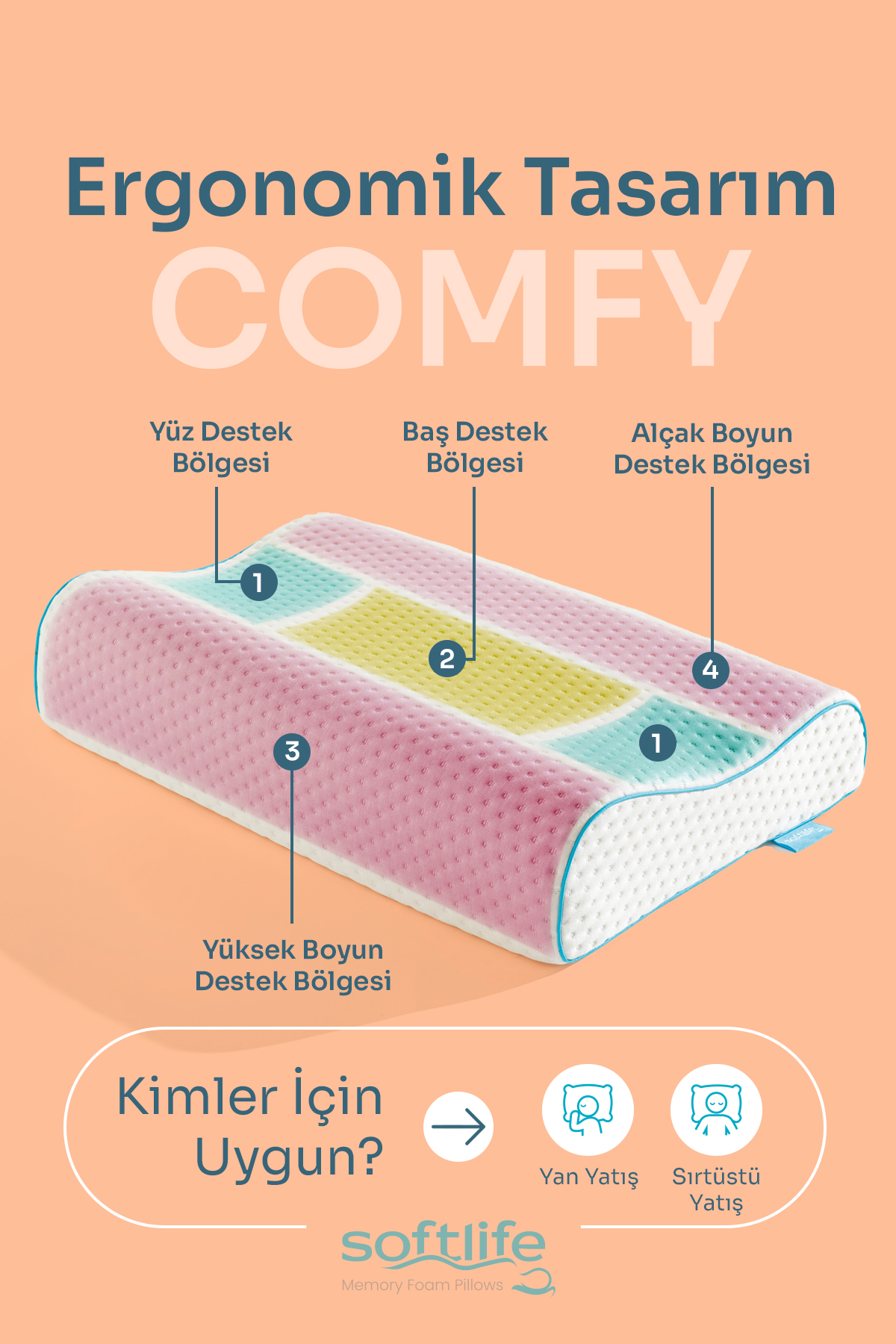 Softlife boyun destekli visko yastıklar, boynunuzu ve başınızı en uygun pozisyonda tutarak omurga hizalamasını korur.