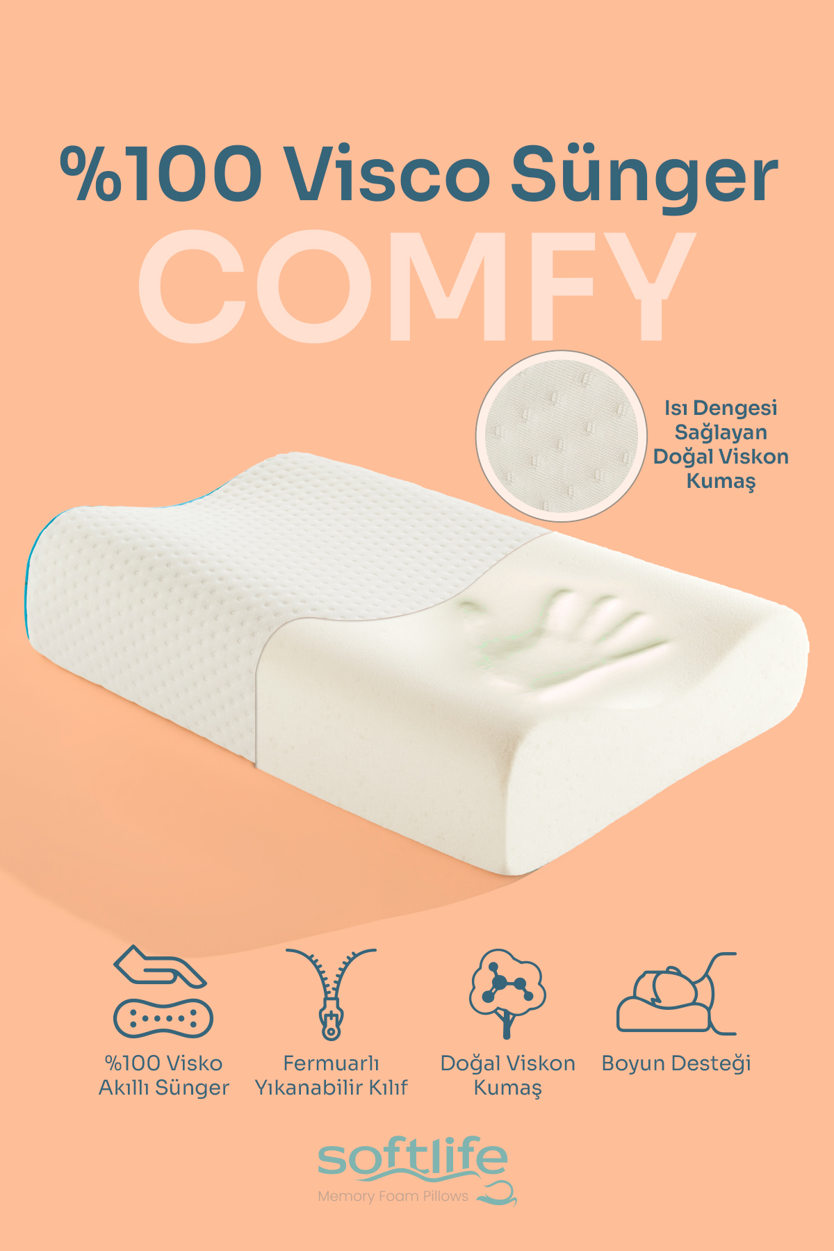 COMFY Visco Çift Boyun Destekli Ortopedik Visko Yastık – 60x40x12/10cm