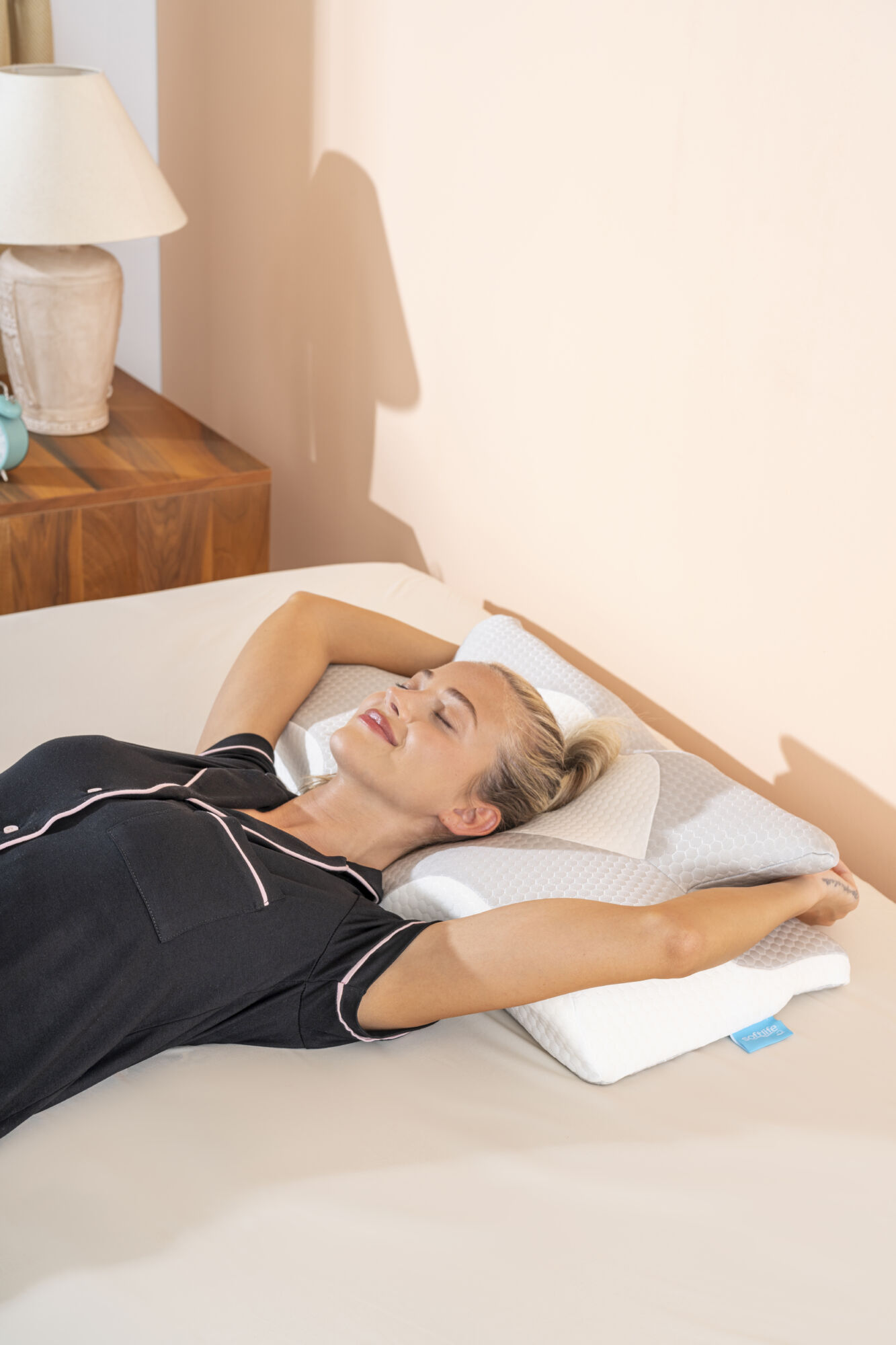 Softlife Nox yastık vücudunuzun doğal eğrisini takip ederek destek sağlamak için en iyi şekilde tasarlanmıştır. Solunum yolunuzu daha az horlama ve daha dinlendirici bir uyku için en uygun şekilde tutar. Yanlardaki kesikler, üst kolunuza dinlenebileceği bir yer sağlar ve omzunuzun önünüzde kamburlaşmaması için açılı tutar.