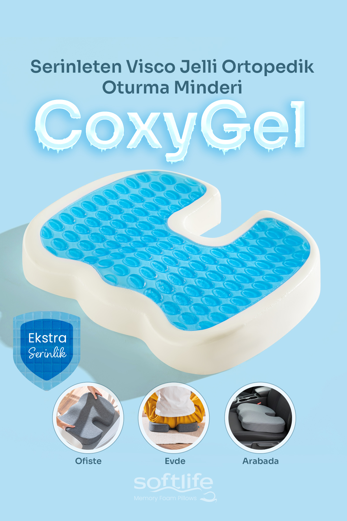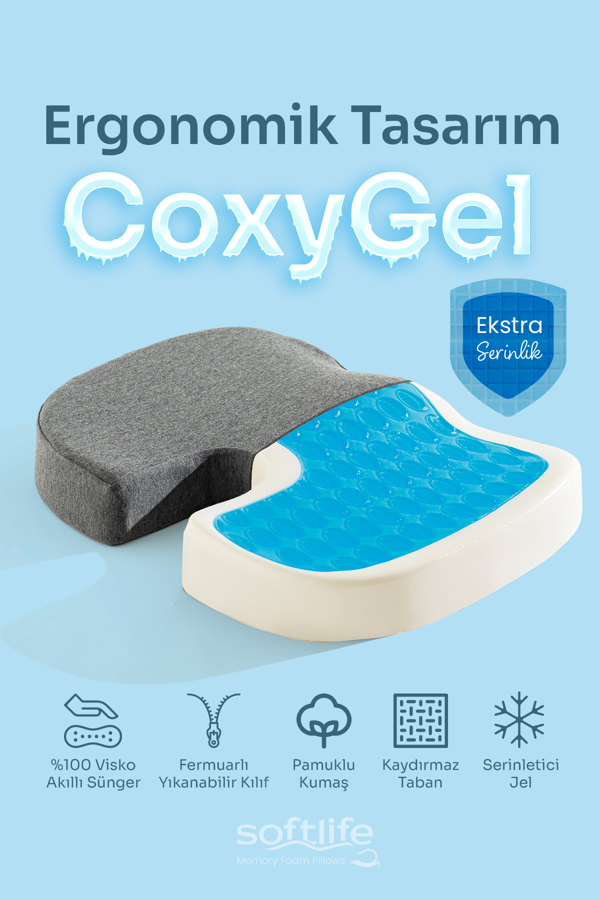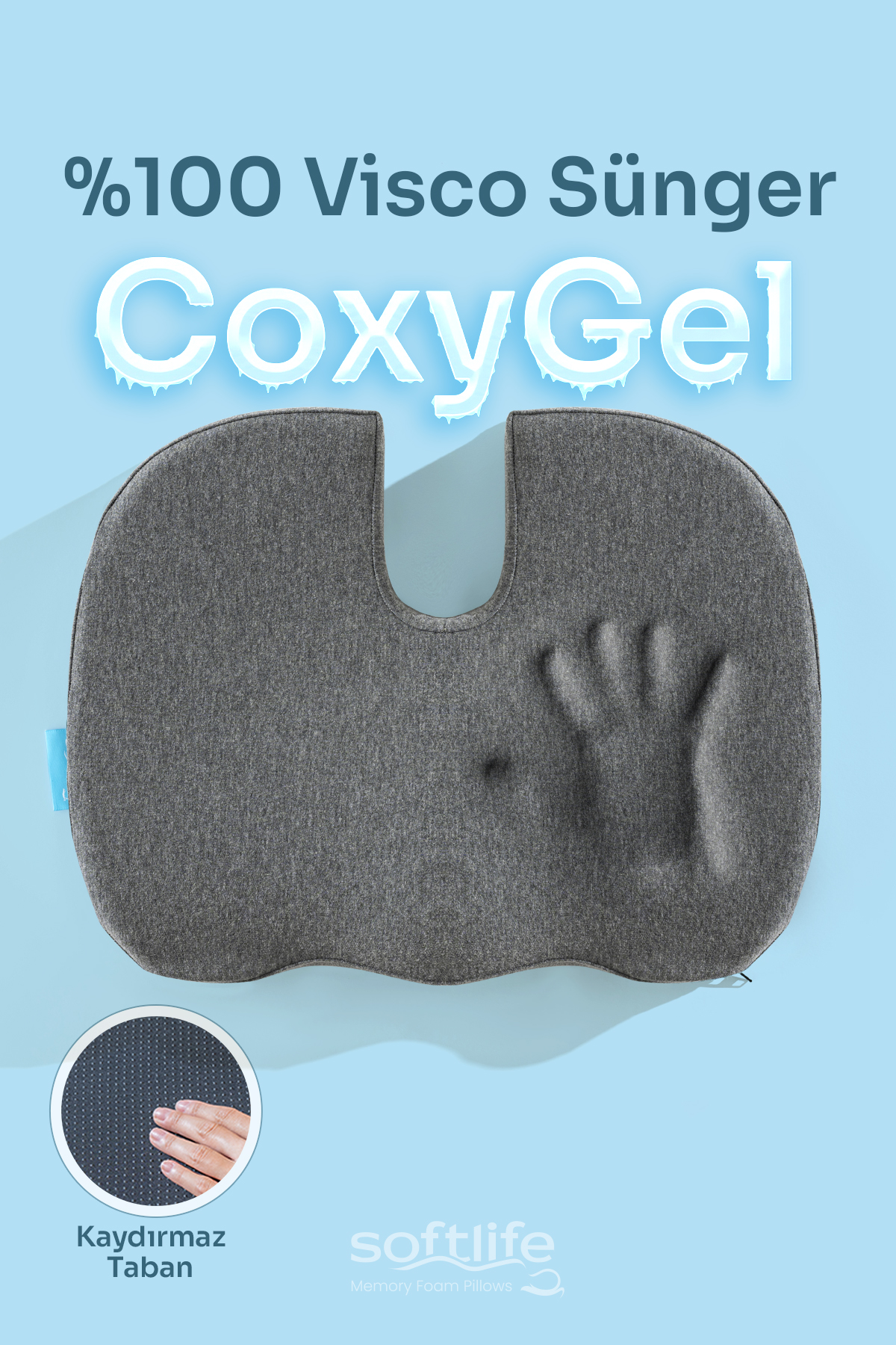 CoxyGel Serinleten Visco Oturma Minderi Jelli Ortopedik Coccyx Kuyruk Sokumu Minderi 45x34x7cm