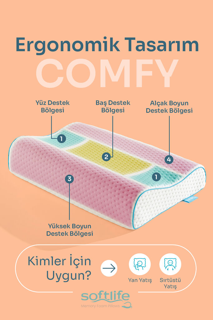 Softlife visco yastık, boyun destekli tasarımıyla ortopedik bir uyku deneyimi sunar. Visko elastik yapısı, başınız ve boynunuzun doğal eğrilerine uyum sağlayarak rahat bir uyku pozisyonu elde etmenize yardımcı olur.
